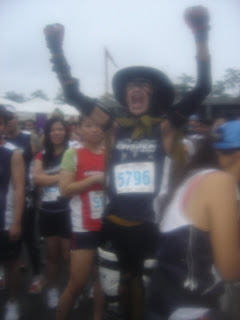 We hurried with our last minute preparations. Then jogged down the stairs of the parking building going to the starting line, to be greeted by some rain drizzles. I'm happy I'm a bit prepared for the occassion, coming from Wednesday and Thursday recovery runs while drizzling.